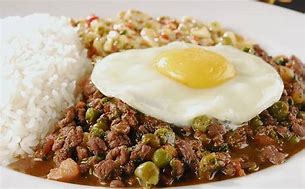 SIRVA O PICADINHO COM OVOS FRITOS, FAROFA DE OVOS, ERVILHA PASSAD ANA MANTEIGA E ARROZ BRANCO.