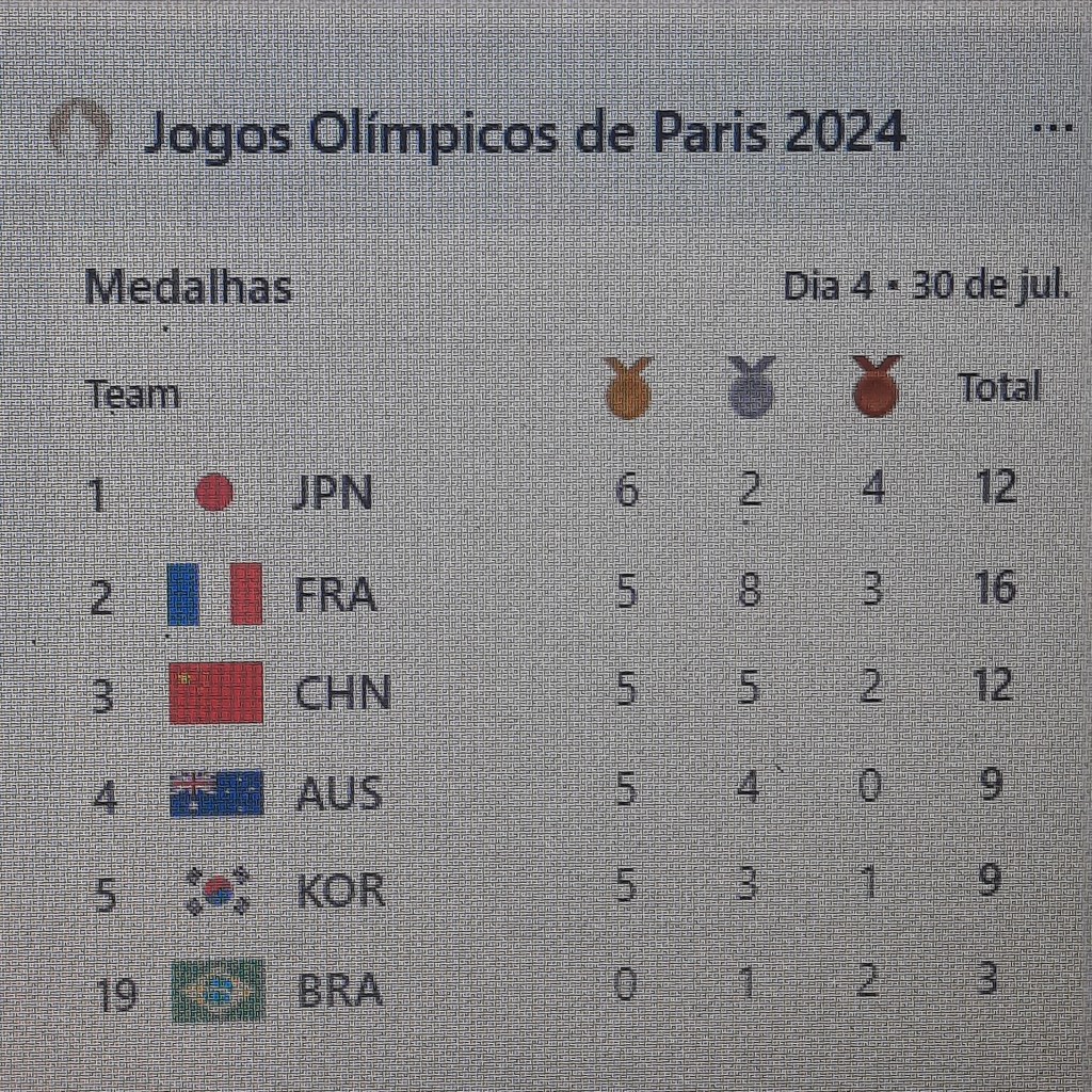 Parabéns ao Japão, aos Japoneses e aos Atletas japoneses que lideram as Olimpíadas de Paris 2024 nesse momento. Deram show ontem na Ginástica Artísticas.