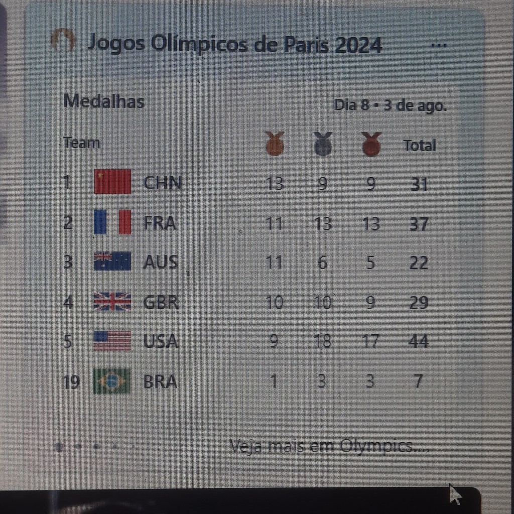 P.S. 5 – finalmente o Primeiro Ouro do Brasil, Bia, do Judô (esporte que mais ganhou medalhas em todos os tempos e na atual edição das Olimpíadas). Meus Netos Eduardo e Bruno praticam Judô e estão muito felizes com a conquista!