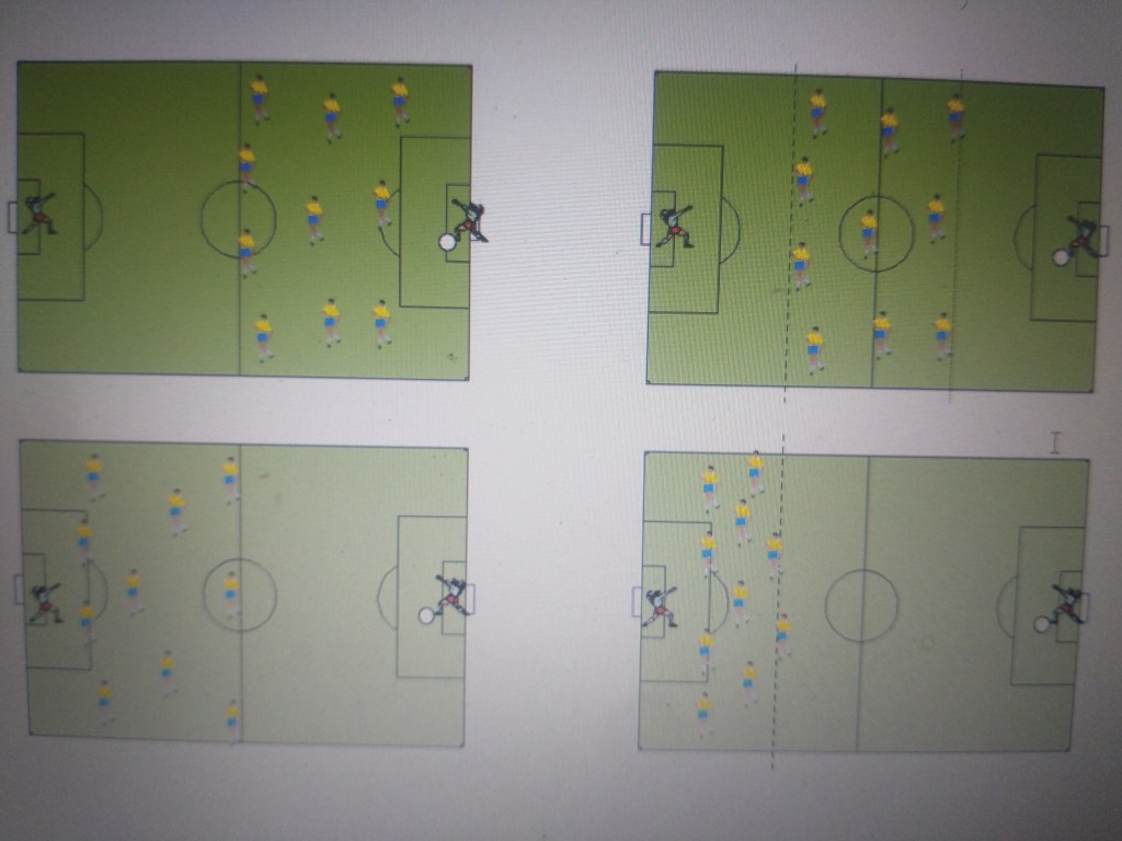 Pode-se usar bolas nas laterais e no meio, ou o próprio Treinador com uma bola para o time considerara a linha de marcação e a bola, quando pode se tornar mais compacto se aproximando da posição da bola e se afastando da lateral oposta.