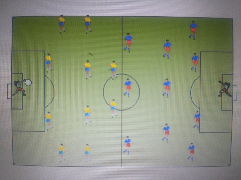 Fatores condicionantes: devido à complexidade do exercício deve-se começar cada etapa (4-3-3- x 4-2-4, por exemplo de forma livre e aos poucos introduzir os condicionantes: bola no chão, bola não pára) à medida que avançam as etapas, incluir além desses, jogador não pára – realidade dos Sistemas mais modernos, 3 toques na defesa, 2 no meio e livre no último terço), e outros como: gol de fora da área vale 3, de cruzamento 2, tabela 2, etc.