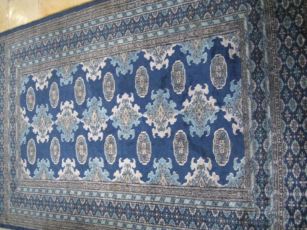 – Tapete novo em azul Royal e cinza, dimensões de 2,07 x 1,215, feito no Paquistão.