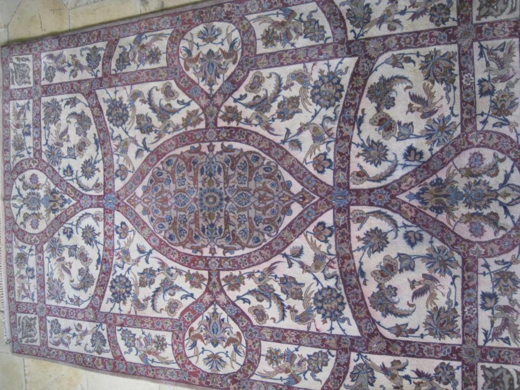 – Tapete bege com azul e flores, mais escuro, 2,13 x 1,28, Naim Persa.